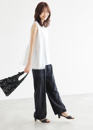 ・レースブラウスで甘さを加えても◎。