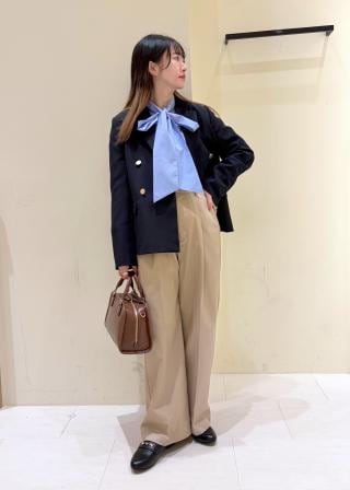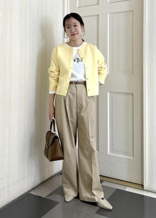 ・ジャケットとチノパンのコーデはフレンチシックになり、日常にも取り入れやすい上品カジュアルなバランスが魅力。