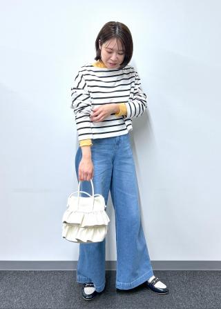・ホワイトは、ビビッドカラーのトップスや、ボーダーシャツが好相性。
