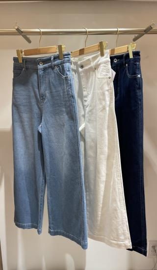 【ウエスト革命デニム】ウエストシェイプデニムワイドパンツ