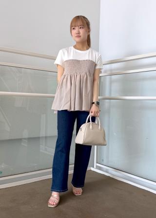 ・コンパクトなTシャツなら女性らしくなり、ゆったりTシャツならリラクシーなカジュアルコーデに。