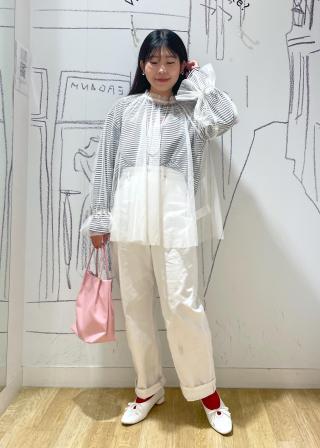 ・裾をロールアップしてバレエシューズを合わせるとパリジェンヌ風に。