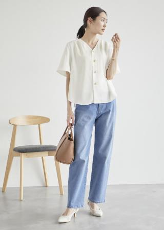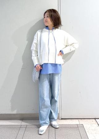 ・クロップド丈トップスでバランスの良いコーディネートに。