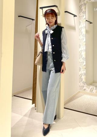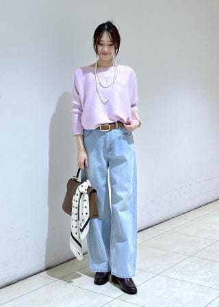 ビジュー使いがいつものデニムスタイルをアップデートしてくれる、主役になるデニムです。細かなビジューなので、そこまで派手過ぎずコーディネートにも取り入れやすいです。シルエットは脚のラインを拾わないワイドシルエットです。少しルーズに履きたかったので、40サイズを着用しています。ウエストや腰回りはゆとりがあり、着丈はフラットシューズだと少し地面に擦りそうな長さです。