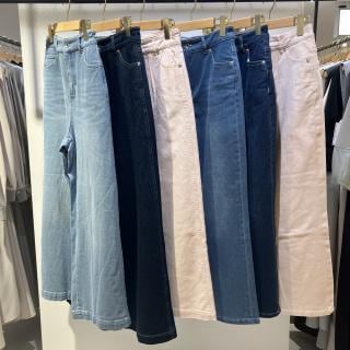 ウエストの太いゴムが腰を包み込み、とても安定するデニムです。154㎝ですが、かかとが低い靴を履いても裾が地面に付きませんでした。