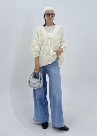 ぽっこりお腹を塞いでくれるバギーパンツ型のデニム。