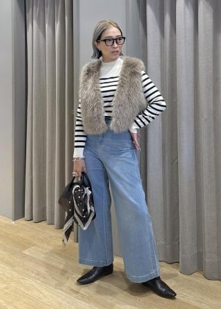 ウエストの位置がかなり高めです。上衣をインして着ると後ろ姿のお尻が長く感じるので、後ろは上衣を出すとか、インせずにフワッとした上衣と合わせようと思います。