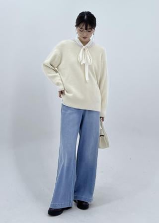 柔らかいデニム生地で幅広めのワイドシルエットなので動きやすいです。