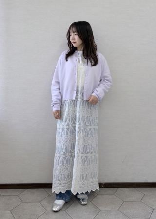 ・Vネックティアードレースビスチェ(品番:GDF16000)+アソートロゴスウェット(品番:GDM86000)を重ねた、今年らしいレイヤードスタイルも好相性。
