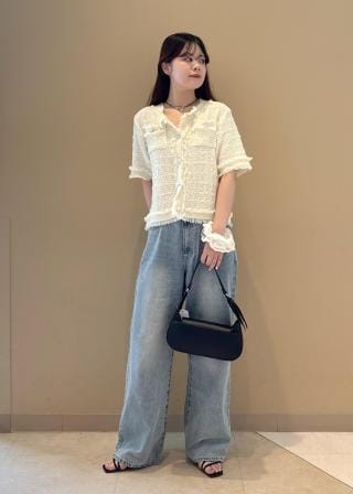 ・レースやパフスリーブといった、スウィートなデザイントップスと好相性。