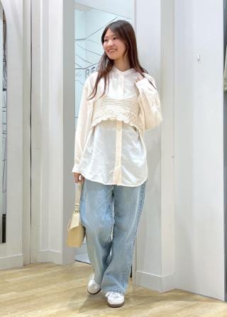 ・レースやパフスリーブといった、スウィートなデザイントップスと好相性。
