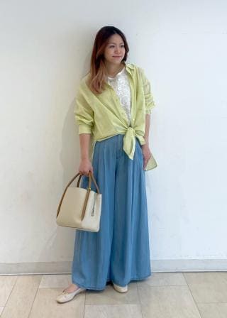 ・素材におち感があるので、シルエットが広がりすぎずコーディネートしやすい。