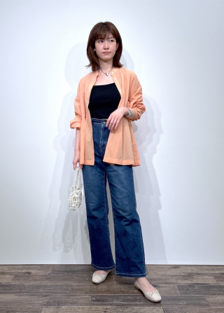 ・ウエストが深め&広がりすぎないフレアシルエットで脚長効果抜群のデニムパンツ。