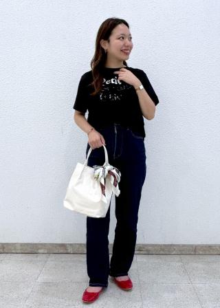 ・コンパクトなTシャツなら女性らしくなり、ゆったりTシャツならリラクシーなカジュアルコーデに。