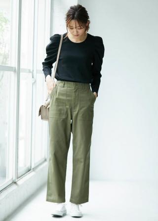 ・やや細みのベイカーパンツですが、ワンサイズアップでゆったりと着用して頂くのもおすすめです。