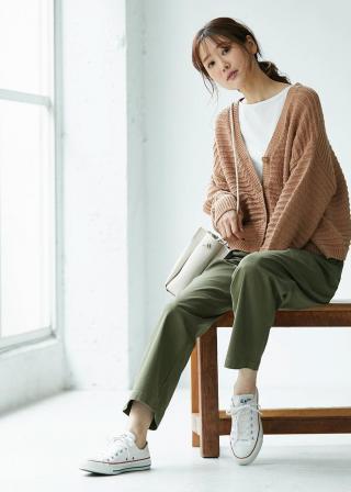 ・ブラウン系(22)は新色。トップスには暗めの色を合わせてシックな装いを演出してくれます。