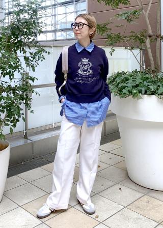 ・ゆるっとしたスウェットシャツやニットで抜け感をプラスして。