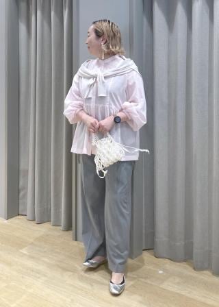 ・シアーなトップス合わせで女性らしいスタイリングに。