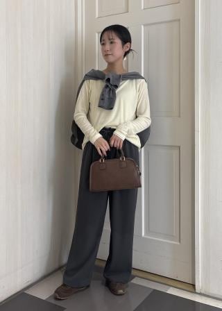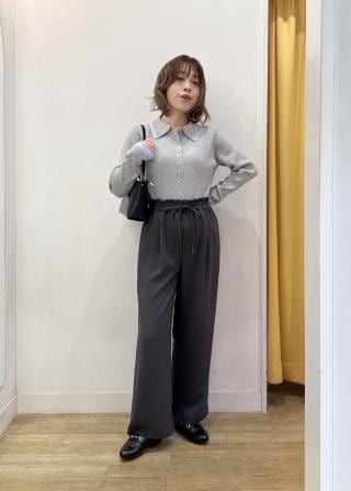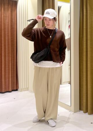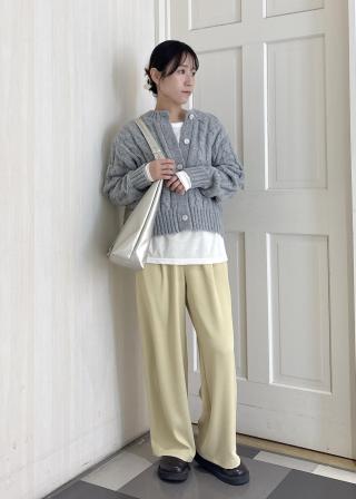 ・ドルマンニットやボリュームトップスと合わせることで、パンツのすっきりシルエットが引き立つバランスの良いコーディネートに。