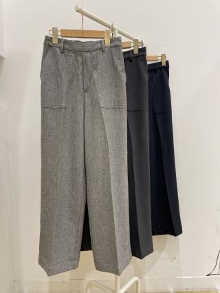 ・ポリエステル×ポリウレタン素材で軽やかでシワになりにくく、きれいめな表情と快適な穿き心地。