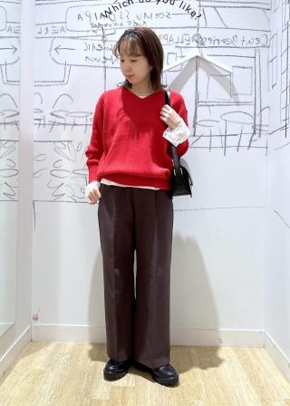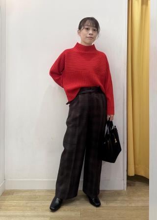 ・カラーの効いたニットやシャツ+ニットのレイヤードスタイルのボトムとして合わせたスタイルは、秋を感じられるスタイルでおすすめ。