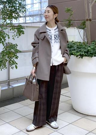 ・チャコールのチェック、トラッドムードのダークブラウンのチェックに加え、コーディネートを上品に柔らかくみせるブラウン系無地の3色展開。