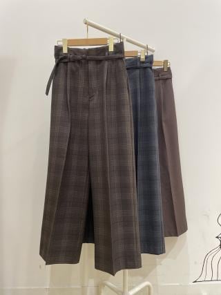 裏起毛無地&チェックアソートワイドパンツ/防シワ