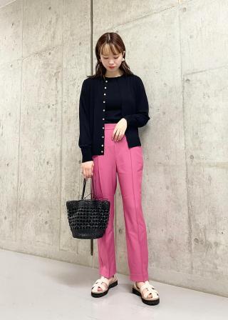 ・ピンクはブラック合わせで引き締めたり、ベージュで柔らかに仕上げても◎。