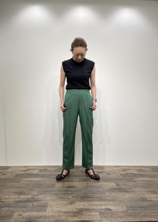おすすめコーデ:フロントピンタックのデザインで脚のラインがとてもキレイに出るパンツなのでシンプルなTシャツ合わせでもこなれた雰囲気が出ておススメです。