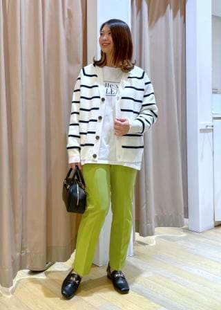 ・ボーダーカットソーを合わせたフレンチカジュアルな着こなしも一押し。
