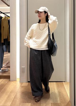 素材感は程よく厚みもあり、脚のラインを気にせずに穿けるゆったりシルエットです。