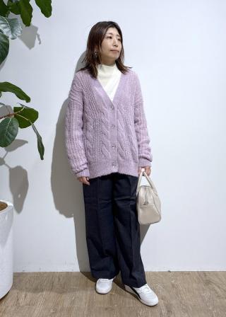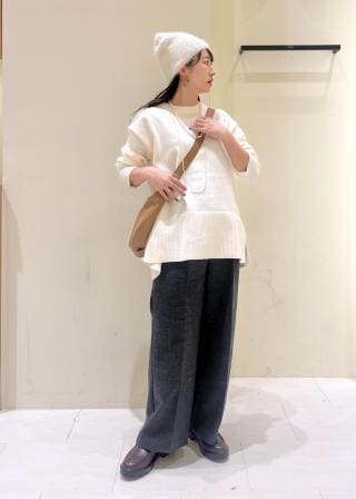 ・ざっくりとしたオーバーサイズのニットを合わせれば、肩の力が抜けたこなれ感のある大人カジュアルな着こなしに。