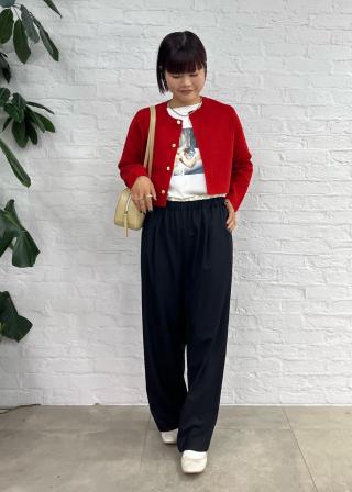 ・ジーンズスタイルにレッドを合わせると洒落感もアップ。