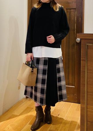 ・ミニボトムに合わせる際には、お気に入りのソックスやカラータイツを合わせて。