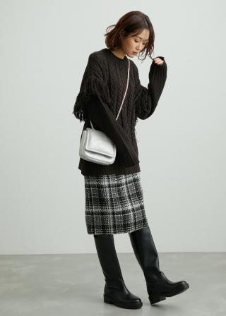・ミニボトムに合わせて安心感のあるスタイリングに。