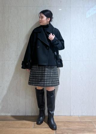・キルトスカートに合わせてトラッドなスタイルが完成。