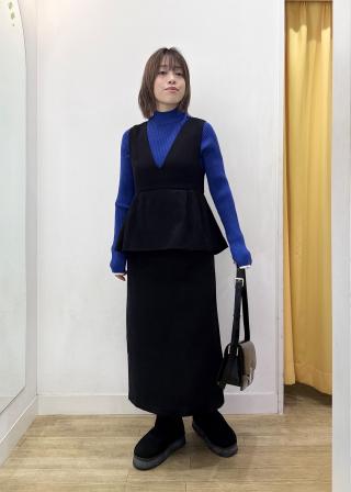 ・ロングのプリーツスカートや、ニットワンピースと合わせた女性らしい着こなしもおすすめ。