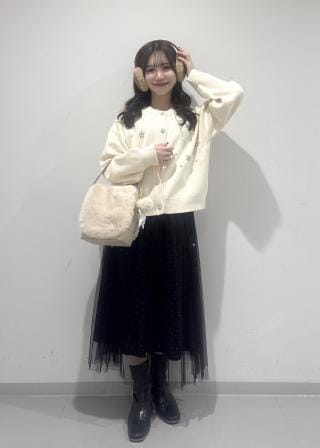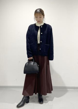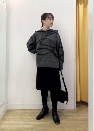 ・ミディ丈スカートと合わせて、足元をすっきりと見せる上品コーデ。