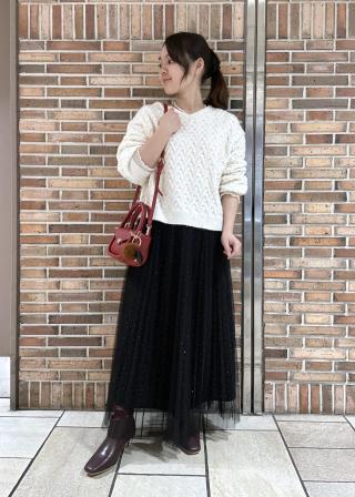 ・プリーツスカートと合わせて、軽やかで女性らしい着こなしに。