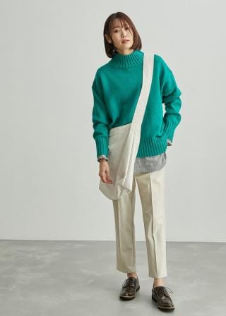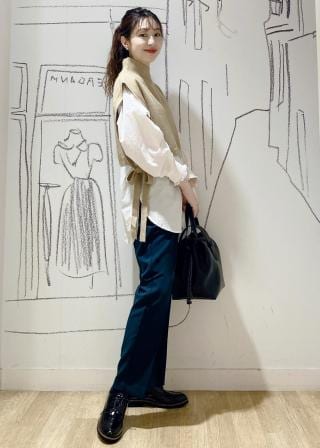テーパードパンツや甘めのワンピースと合わせて履いています。