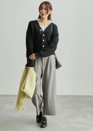 ・チェック柄スカートに合わせるとトラッドなムードに。