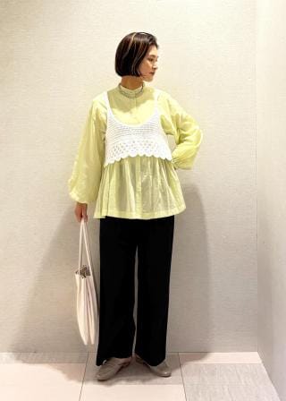 ・ワイドパンツ合わせでマスキュリンなルックに。