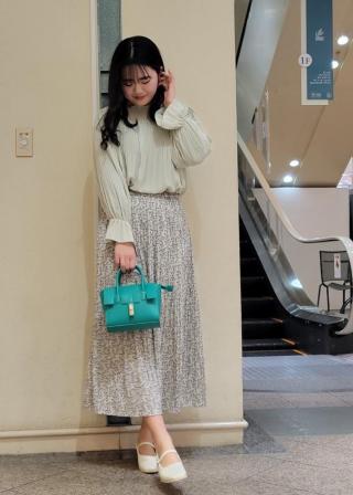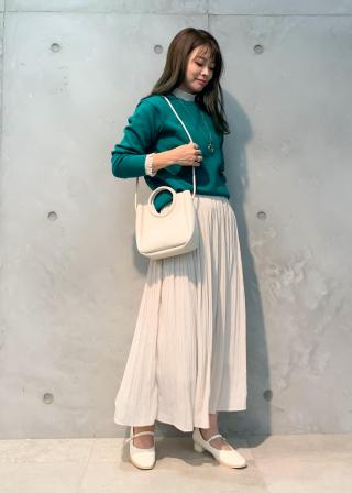 ・冬はカラータイツとの組み合わせも楽しい。