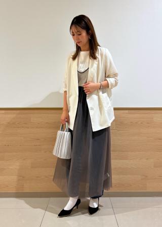 ・季節感を出すなら、軽やかなピンクがおすすめ。パンツにもスカートにも合わせやすいフォルム。
