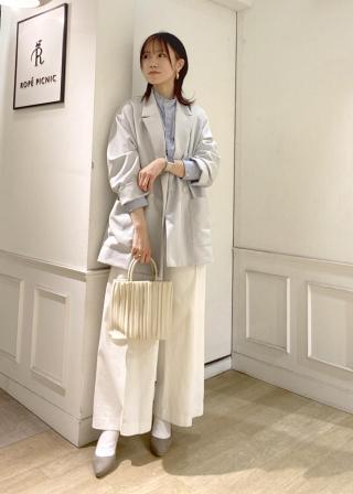 ・季節感を出すなら、軽やかなピンクがおすすめ。パンツにもスカートにも合わせやすいフォルム。
