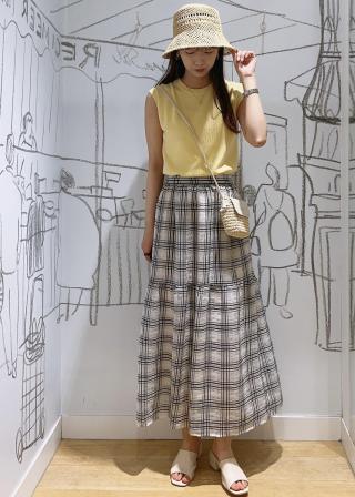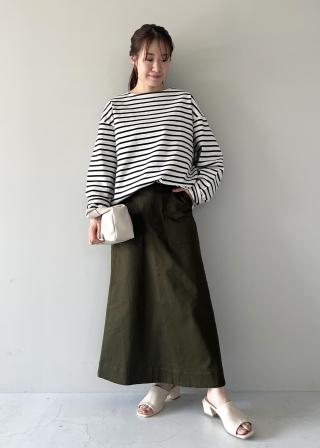 ・優雅に広がるロングスカートなら、足元で抜け感をプラスできる。