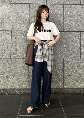 ・とろみのある質感のワイドパンツで、大人エレガントな着こなしに。
