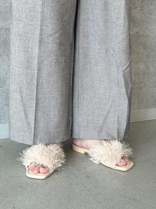 フリンジファーフラットサンダル