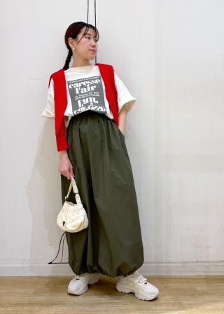 ・スキニーパンツやクロップドパンツ等、すっきり感のあるボトム合わせがベター。