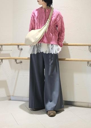 ワイドパンツでも足元が沈まず、全体をスッキリ見せてくれます。
